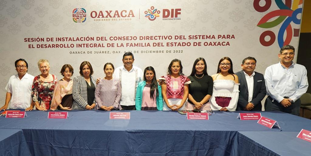 El Consejo Directivo del Sistema para el Desarrollo Integral de la Familia del Estado de Oaxaca está conformado por: Maribel Graciela Salinas Velasco, directora general del DIF Oaxaca; Leticia Elsa Reyes López secretaria de Honestidad, Transparencia y Función Pública; Laura Estrada Mauro, secretaria de Bienestar, Tequio e Inclusión; y Farid Acevedo López, secretario de Finanzas.