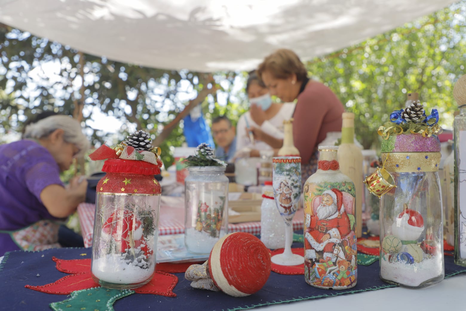 Las personas utilizan su imaginación para elaborar lámparas y botellas decorativas con los colores y diseños relacionados con la Navidad, todo ello con la guía de la instructora del parque. Cabe señalar que se utilizan materiales reciclables, para contribuir con el medio ambiente.